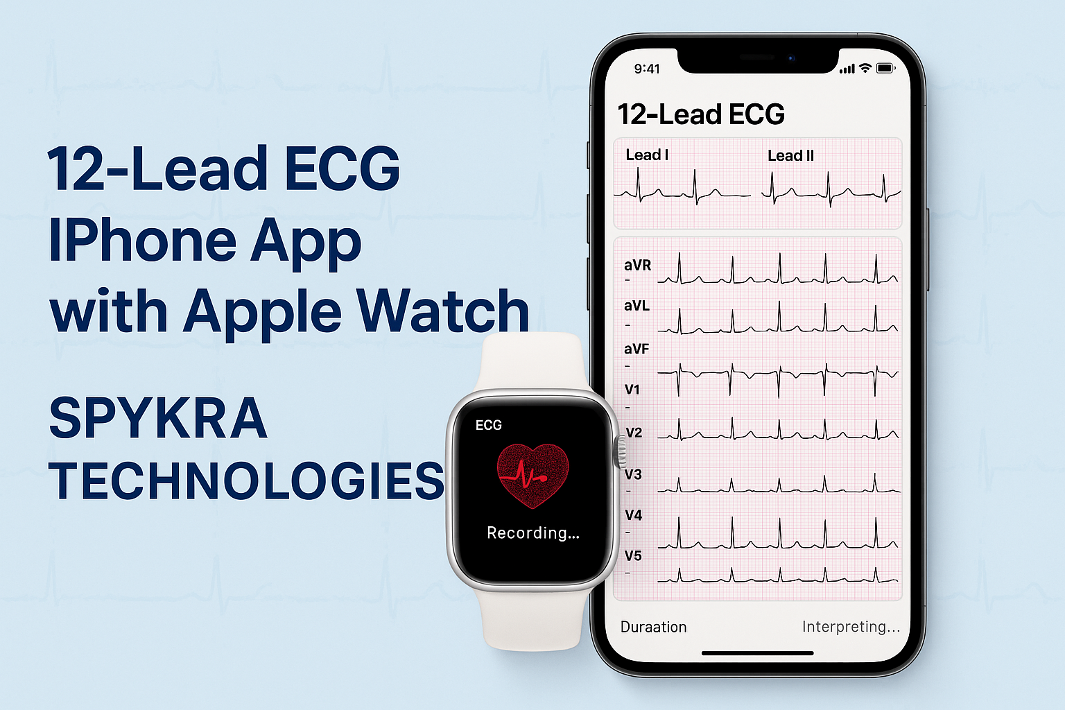 At Spykra Technologies, we are building an iPhone app that works with your ECG-enabled Apple Watch to capture a full 12-lead ECG. The same kind used in hospitals. The app guides you through placement of the Apple Watch on specific chest locations to record V1 to V6 leads. From those, it automatically calculates limb leads like Lead I, II, III and derived leads like aVR, aVL and aVF using validated formulas.